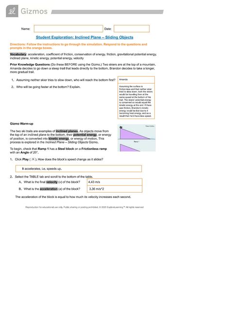Read student exploration inclined plane sliding objects answer Doc