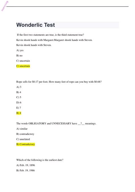 Read Subway Wonderlic Test Questions Doc